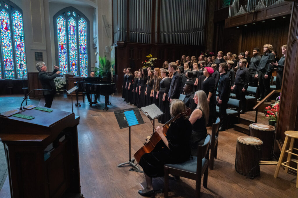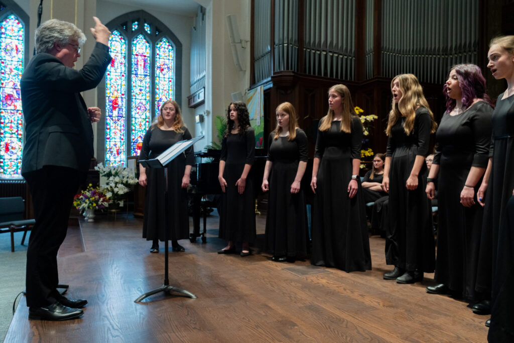On April 27, 2025, the Youth Chorus premiered “A Continuous Harmony” written for the Youth Chorus by Sean Ivory. The Grand Rapids Youth Choruses commissioned this piece to honor Sean Ivory’s years of dedication and work with and for GRYC. We were given the opportunity to have a workshop with Sean Ivory, and the choristers were given a chance to ask questions about his writing process. Additionally, the third movement of this work has lyrics that were written by members of the Youth Chorus.